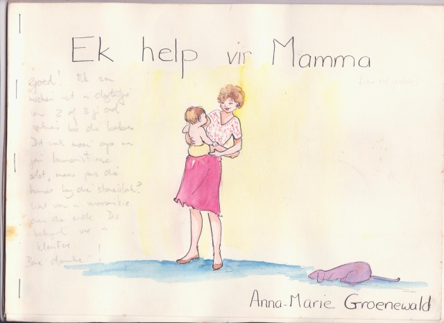 Het jare gelede ‘n kurses by UNISA gevolg in die skryf van kinderverhale. Die opdrag was ‘n prenteboek vir kleintjies. Hierdie goed is goes wat mhy eie kleintjies gedoen het, maar ek stem saam dat die humor dalk bietjie verlore is vir sulke klein kindertjies – dis meer vir die mammas. Verder moes ek die koekies en eetgoed op einde meer beklemtoon het.