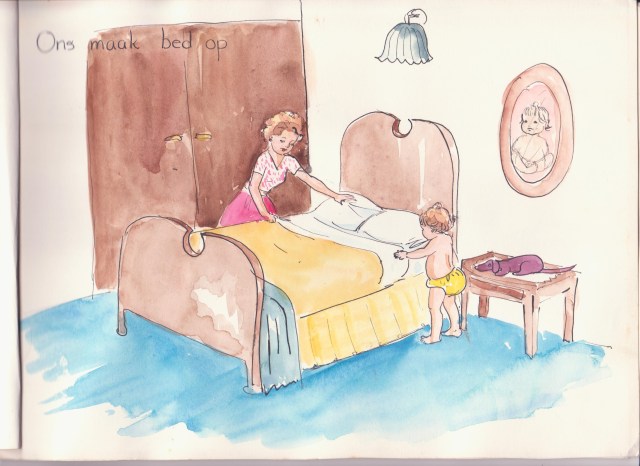 Ag hoe sweet! Ek kry nie die skryfstukkies gelees nie, maar die prentjies is PRICELESS! Wie het dit geteken?