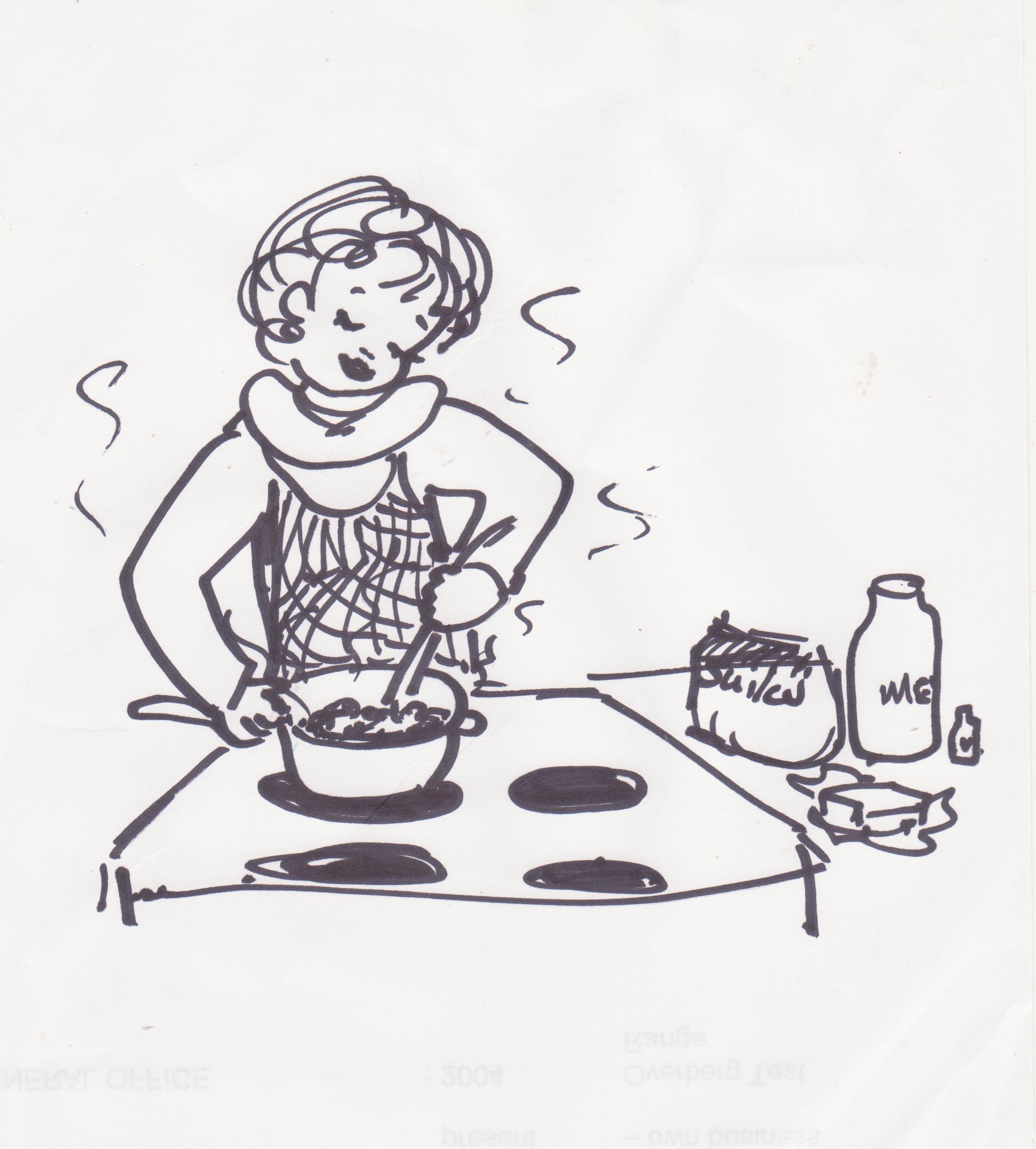 Nou sit jy jou pot waarin jy alles gegooi het, op die warmste plaat wat jy het, en ROER! Dis belangrik dat die suiker smelt voor die goed kook, en jy roer die heeltyd, net soos met fudge. As jy presies wil wees, sit ‘n beker koue water langsaan neer, en toets nou en dan deur ‘n druppel daarin te gooi en te kyk vir die ‘sagte bal stadium’. As jy nie is nie, roer net eenvoudig vir so 10 minute of langer, tot die goed lyk soos klaargekookte fudge of so. As jy vanilla het, gooi jy nou so ‘n bietjie, seker minder as ‘n telepel afhangende van jou hoeveelhied, by. Haal af, gooi in gesmeerde piering of bakkie, en laat afkoel.