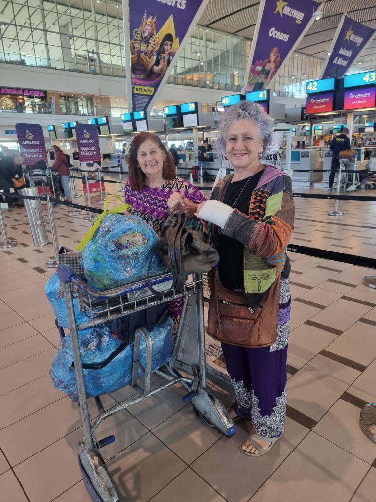 Ek onthou dat ek ‘n ander dame ook met pepsakke in ‘n trollie sien loop het. Die lughawe manne hardloop haar agterna. Uiteindelik daag hulle op met my sak.”Groenewald!” Roep hulle ter bevestiging. Die ander dame het per ongeluk my sak ingepak!
